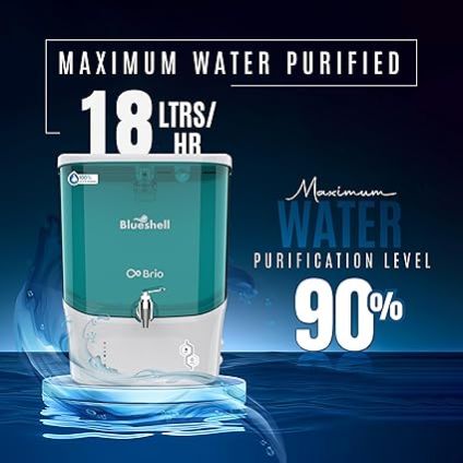 The Blueshell Brio Green RO Water Purifier combines cutting-edge water purification technology with a sustainable design to deliver safe, pure, and healthy drinking water for your home. Its advanced RO purification system removes up to 99.99% of impurities, heavy metals, and harmful microbes, ensuring every drop is crystal clear and refreshing. Featuring innovative Water Saving Technology, the Brio Green minimizes wastewater generation while maintaining optimal purification efficiency — an eco-conscious solution for modern homes. Equipped with a 9-litre tank, it ensures continuous access to purified water, even during power cuts or high demand hours. Made with food-grade ABS plastic, the unit is completely non-toxic, ensuring the highest safety standards for your family. With a sleek green finish and compact design, the Blueshell Brio Green blends perfectly with any modern kitchen interior while saving valuable countertop space.Blueshell Brio Green RO Water Purifier for Home