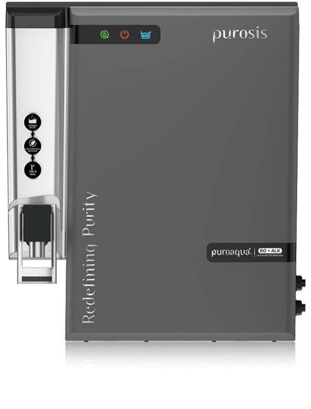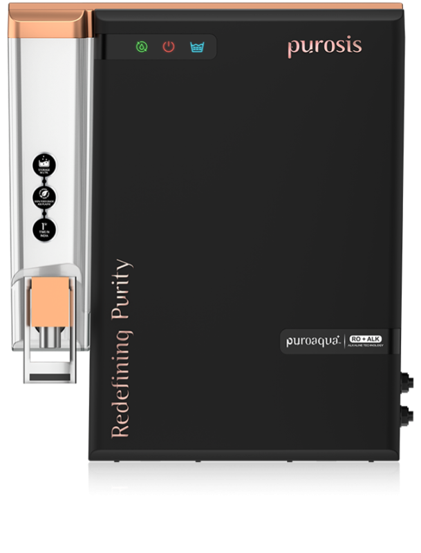Purosis PuroAqua Plus is designed to redefine your hydration experience with innovation and purity. Using state-of-the-art Reverse Osmosis (RO) technology, it ensures that every drop you drink is free from contaminants while preserving natural freshness. Purosis PuroAqua+ harnesses the power of advanced reverse osmosis to purify water with exceptional precision. It eliminates up to 99.99% of contaminants—including harmful bacteria, viruses, chemicals, and trace elements like arsenic and fluoride—ensuring every sip supports your health. Unlike conventional purifiers, PuroAqua+ is built for water efficiency. Its intelligent recovery system reduces waste, making it a responsible choice for eco-conscious homes that care about wellness and sustainability. With a 14-litre tank, you’ll never run out of pure water—even during peak usage or power cuts. The purifier efficiently handles municipal, borewell, or tanker water, delivering consistently clean results across all sources. Sleek, modern, and compact—Purosis PuroAqua Plus enhances your kitchen with both function and elegance. Despite its size, it’s built with high-quality components tested for long-term durability and safety, ensuring worry-free hydration for your family. No additional components included. Drinking alkaline water purified through the PUROSIS PuroAqua Plus system may offer several potential health benefits that help maintain body balance, support digestion, and boost overall vitality.PUROSIS PuroAqua Plus – Elevate Your Water, Elevate Your Life